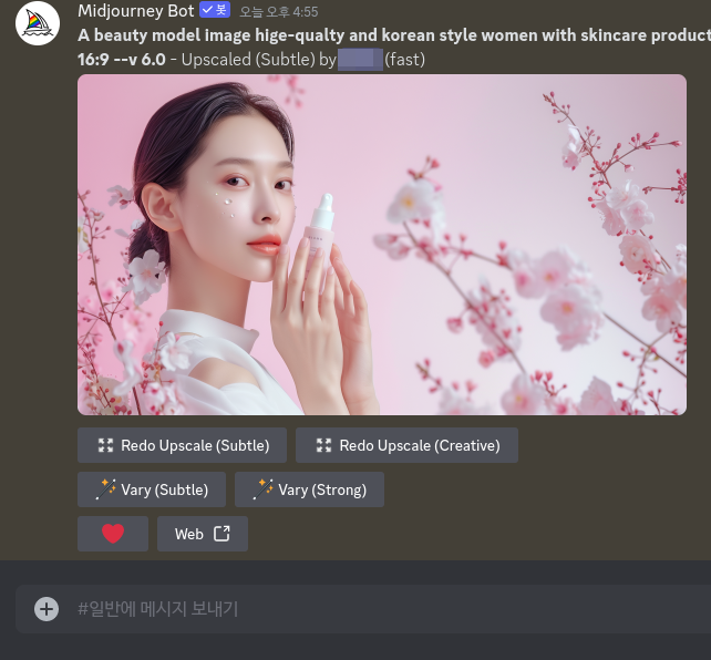 업스케일 중 Upscaled(Subtle)는 크게 변화 없이 크기를 키워주고, Upscale(Creative)는 변화를 더 준 다음 이미지를 생성해 줍니다. 꽤 괜찮은 메인 이미지가 생성되었습니다.