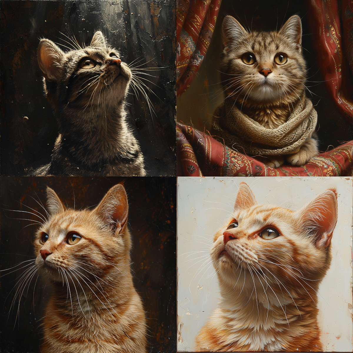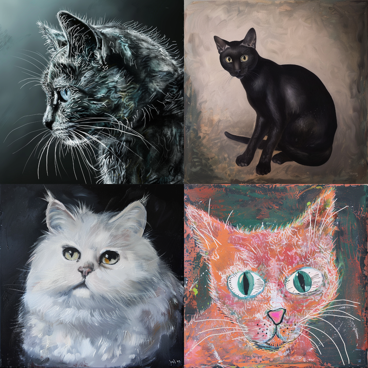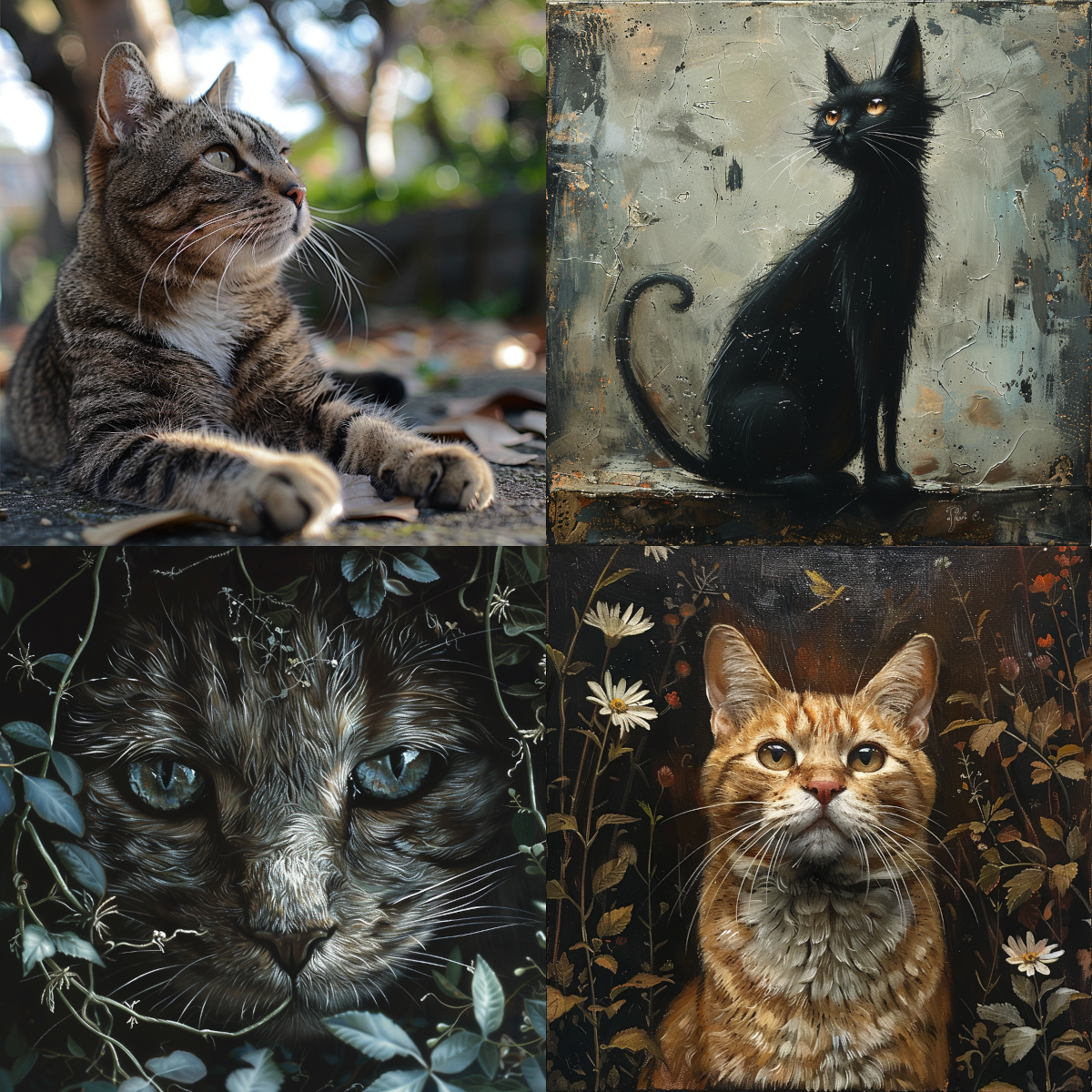 a cat --s 0 을 시작으로 --s 250, 500, 750 순으로 이미지를 생성해 봤습니다.