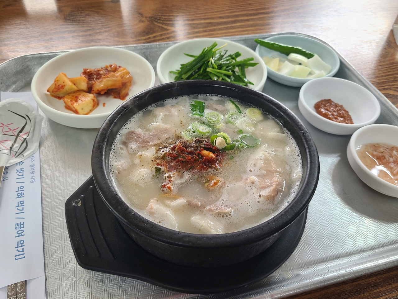 요즘 따로 있는 곳만 가봐서 처음엔 조금 당황했지만 국물 맛을 크게 해치지 않을 정도여서 괜찮았습니다. 어릴 적에는 양념장 넣고 먹었지만 나이 들수록 양념장 없이 먹게 되더군요.